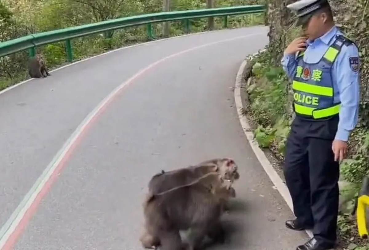 فکرشهر: گروهی از میمونها پس از مسدود کردن جادهای در چین به یک پلیس حمله کردند.