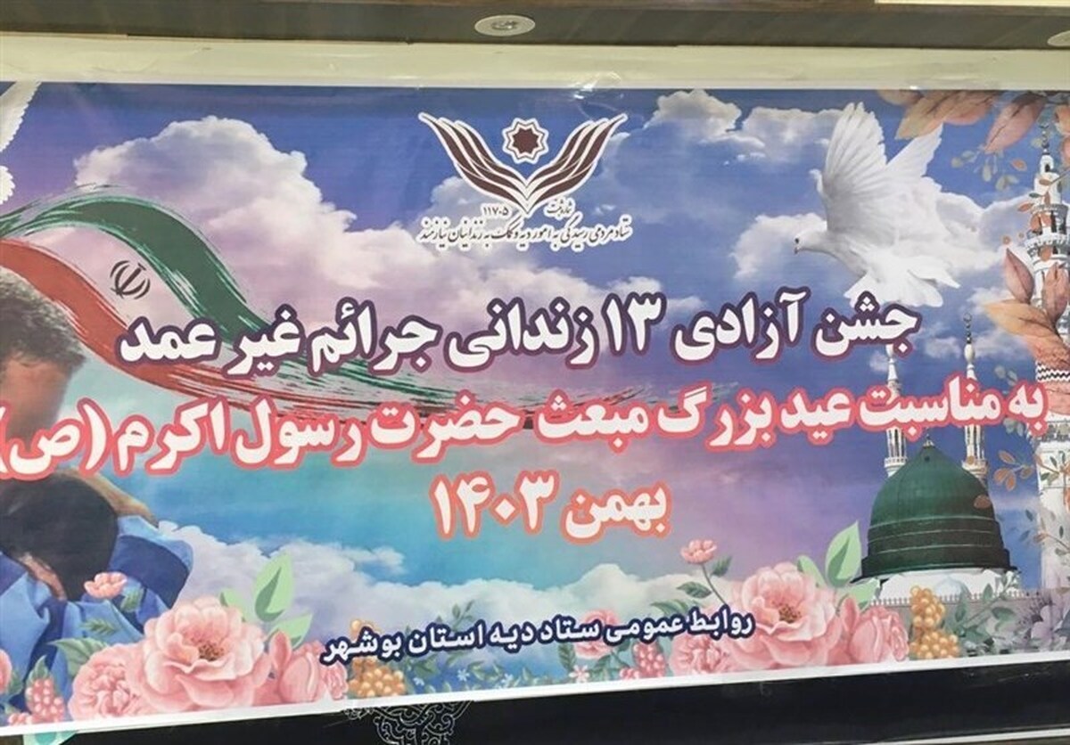 مدیرکل زندانهای استان بوشهر با اشاره به ادامه این پویش و آزادی زندانیان جرایم غیرعمد مالی گفت: ۱۳ زندانی جرائم غیرعمد استان با مشارکت خیرین در کمک به پرداخت بدهی آنان به مناسبت عید مبعث رسول اکرم (ص) از زندان آزاد شدند و به آغوش خانواده باز گشتند.