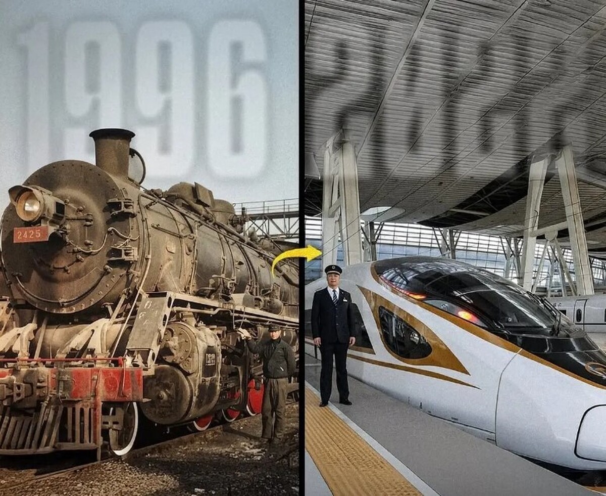 یک راننده قطار چینی در دو تصویر، با ۲۶ سال فاصله زمانی