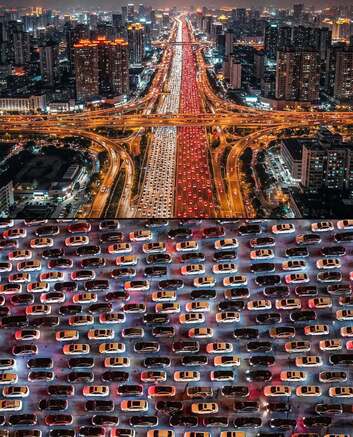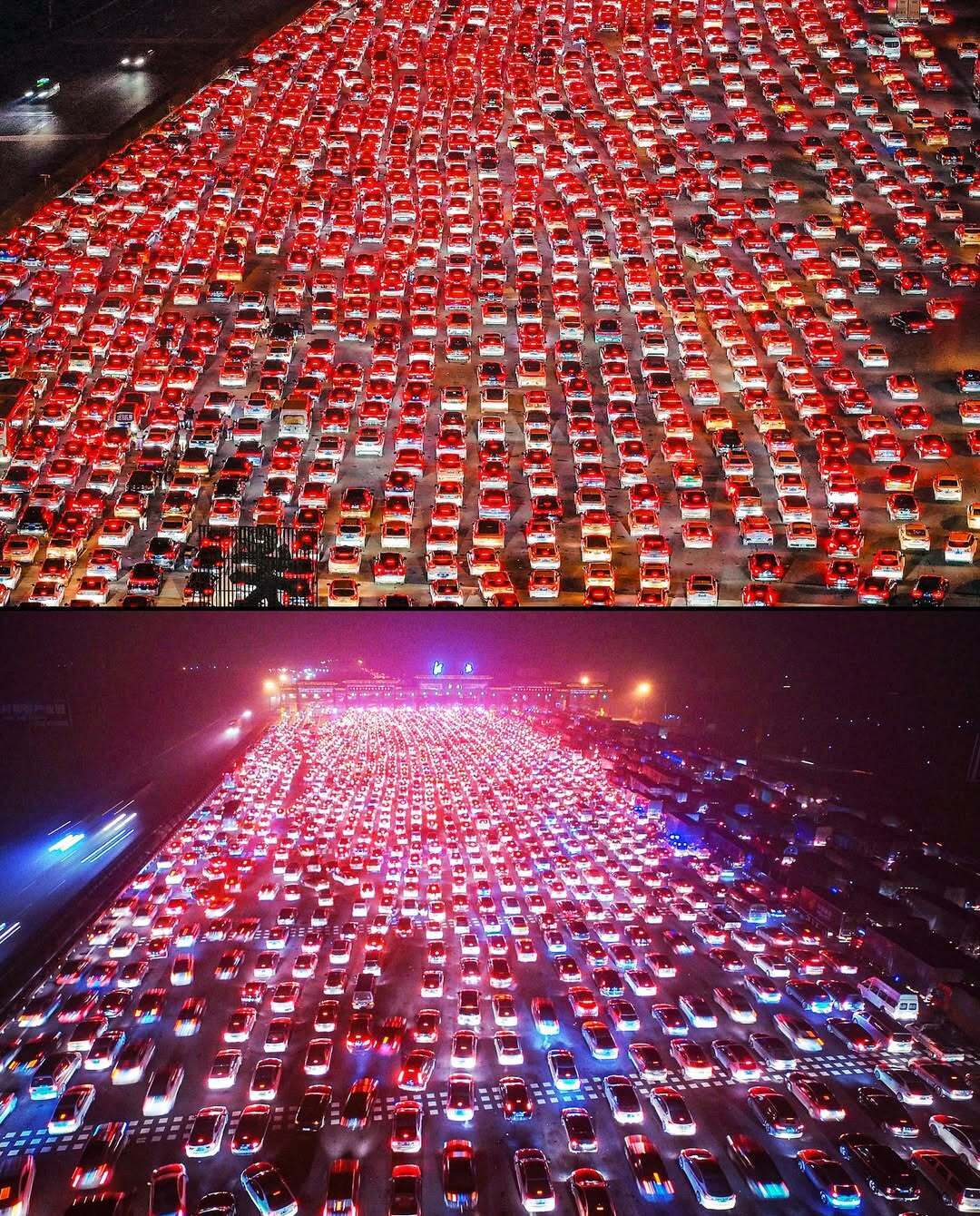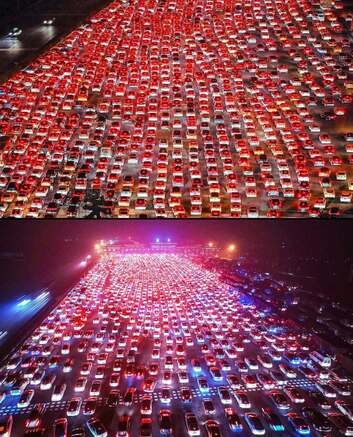 تصاویر/ دریایی از نور قرمز در بزرگراه‌های چین