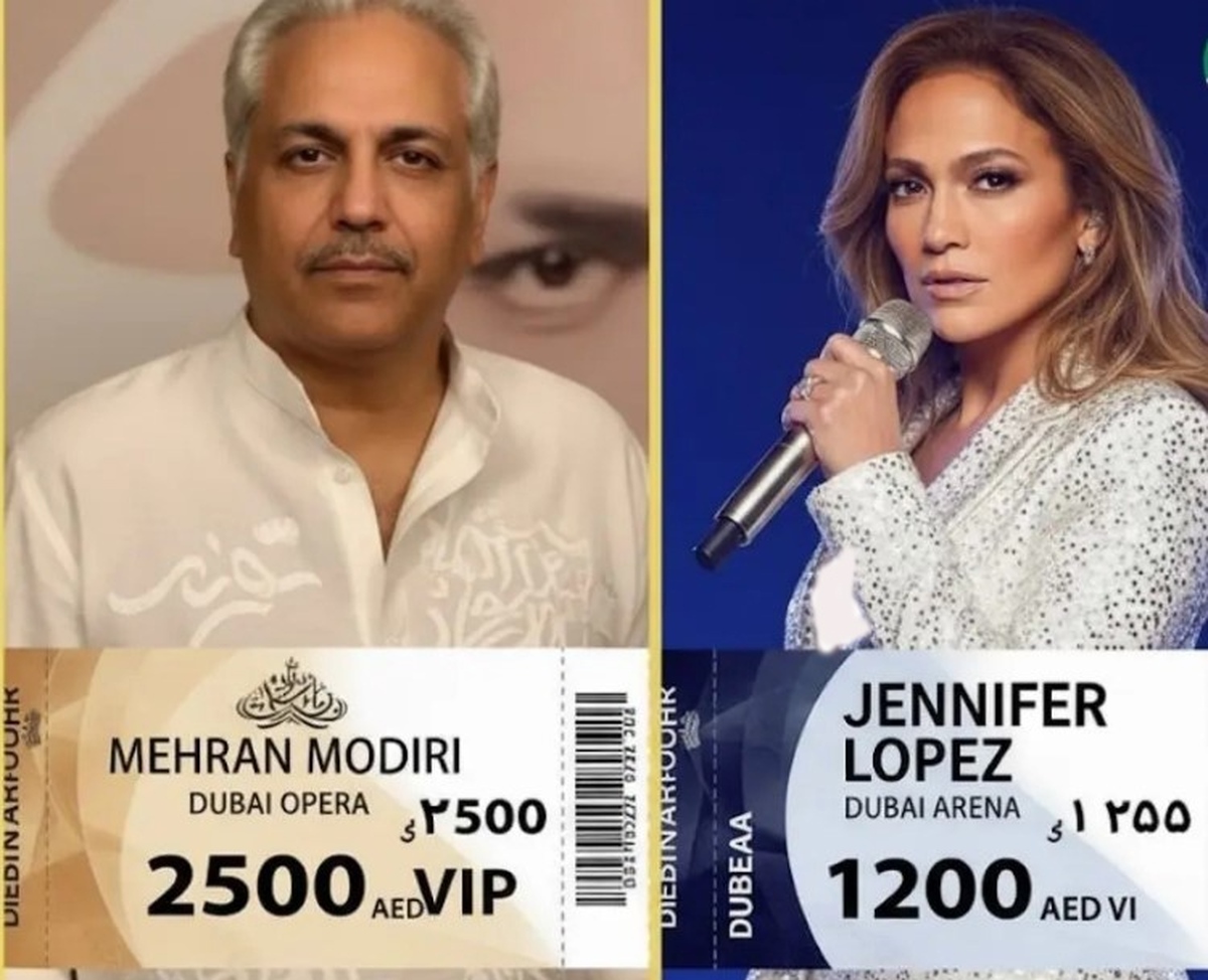 به دنبال اجرای تازهترین کنسرت مهران مدیری در دوبی، رقم بلیت این کنسرت واکنش برانگیز شد. بلیت کنسرت او بین ۳۰۰ تا ۱۵۰۰ درهم، تقریبا معادل ۹میلیون تا ۴۵ میلیون تومان به فروش رسید. کاربران این رقم را به عنوان مثال با کنسرت جنیفر لوپز یکی از گرانترین خوانندگان جهان مقایسه کرده و آن را گرانتر ارزیابی کردند.