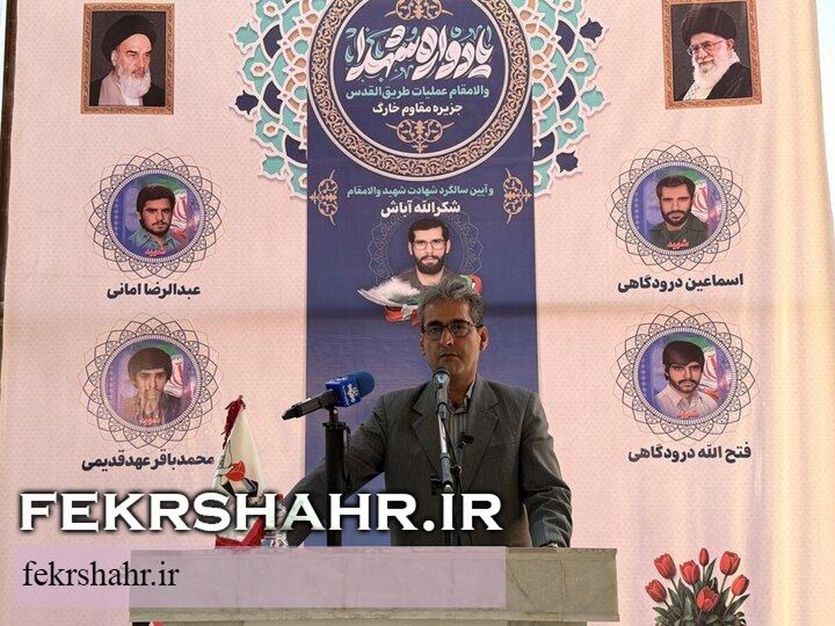بخشدار ویژه خارگ با تأکید بر اهمیت انتقال آموزههای شهدای دفاع مقدس به نسلهای جدید، خاطرنشان کرد: یاد و خاطره شهدا باید همیشه زنده نگه داشته شود تا همگان با الگوگیری از شجاعت و فداکاری آنان، در مسیر ساختن جامعهای پایدار و ایمن گام بردارند.
