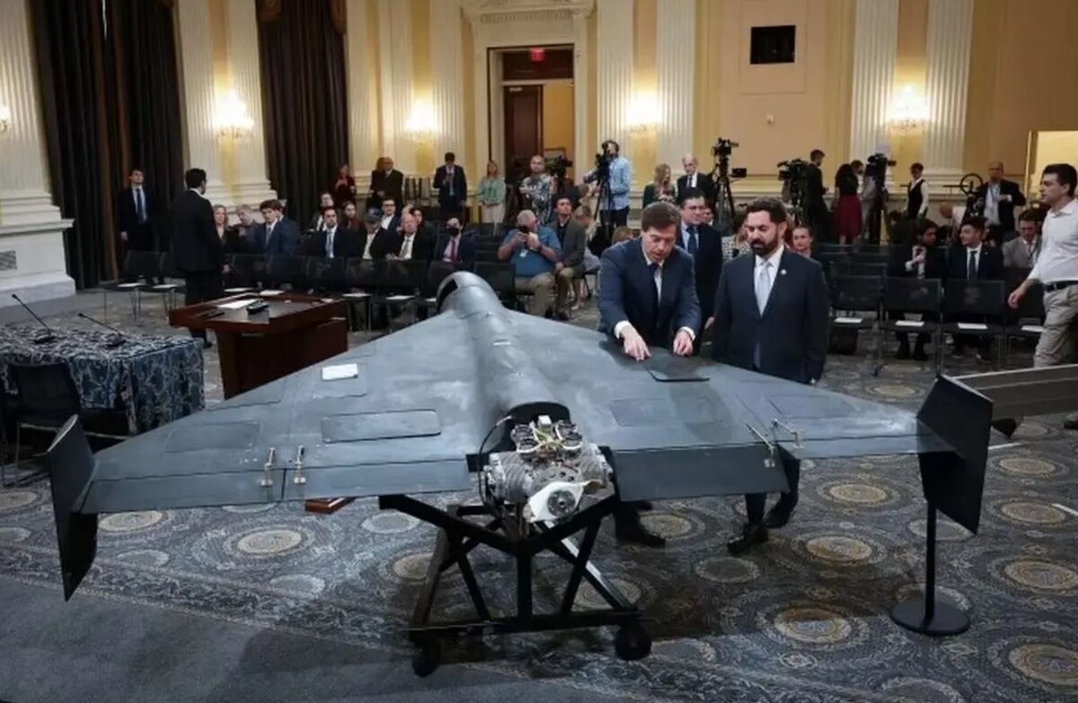 تصویری از نمایش پهپاد شاهد-۱۳۶ ایران که در ساختمان کنگره آمریکا به نمایش درآمده
